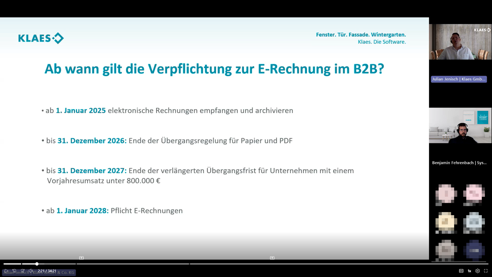 Seit 1. Januar 2025 müssen alle Unternehmen im B2B-Bereich in der Lage sein, elektronische Rechnungen zu empfangen und zu archivieren. Für die Erstellung und den Versand setzt Klaes auf das Format X-Rechnung – kostenlos für alle mit aktivem SEV-Vertrag.
