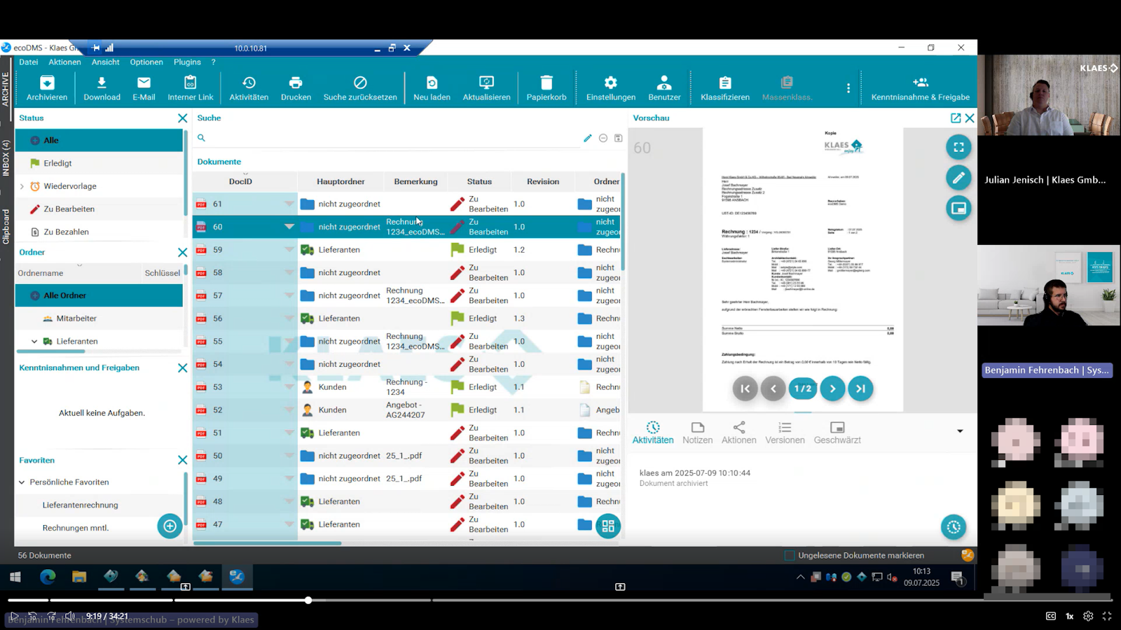 Anschließend zeigte Benjamin Fehrenbach live, wie Belege automatisch archiviert, klassifiziert und weiterverarbeitet werden – ganz ohne Zettelwirtschaft.
