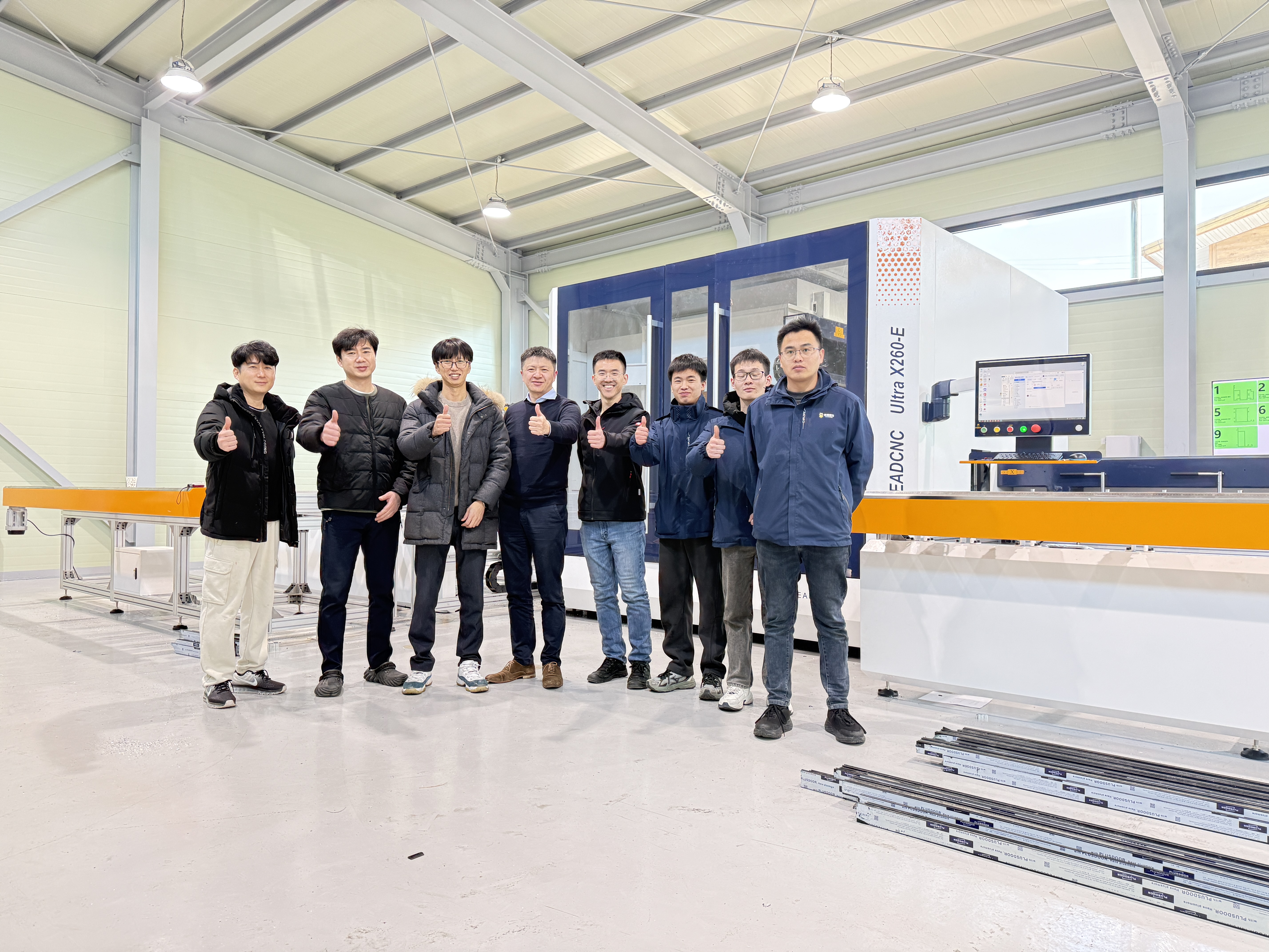 春节将近,当万家灯火开始筹备团圆之时,上周Klaes工程师Kevin助力韩国Plusdoor铝合金门窗生产线圆满调试。这不仅是一次例行的技术支持,更是一份跨越国界的承诺。 在忙碌的生产车间里,Kevin与客户Plusdoor团队、雷德设备团队并肩作战,确保Klaes软件系统与雷德生产线的每一次精准耦合。通过工程师们的现场调试,Plusdoor的铝合金门窗生产实现了从设计到加工的数字化闭环,确保每一扇走下生产线的门窗,都能完美复现实验室级的巅峰性能。